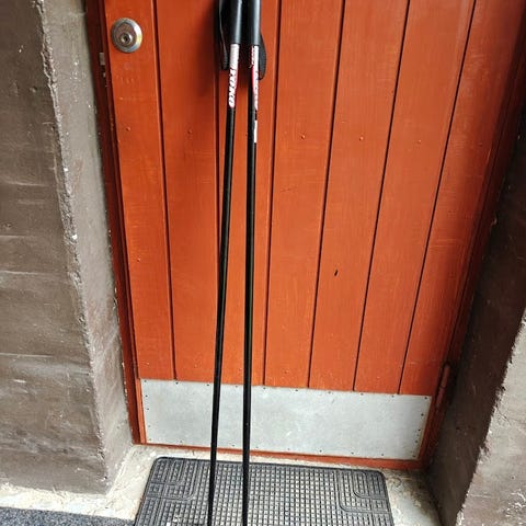 Alumiiniset hiihtosauvat pitkälle ihmiselle. Toinen sompa rikki.