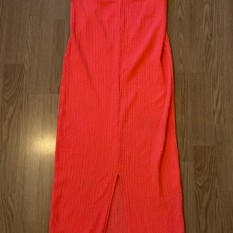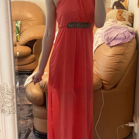 Pituus n.140 cm, leveys lantion kohdalta n. 106 cm, rinnan kohdalta n. 90 cm. Materiaali vähän samettiin viittaavaa, mutta ei tarkkaa tietoa, koska tämä on ompelijan itselleni mittatilaustyönä tekemä.