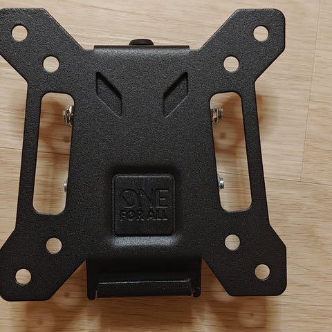 Hyväkuntoinen, tukeva ja monipuolisesti säätyvä seinäteline esim. videotykille ja AV-laitteelle.