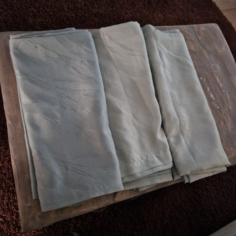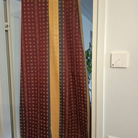 Ohuet valmiiksi ommellut verhot. Yläreunassa rypytys/ripustuslista.