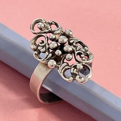 Myydään vanha hopeinen sormus 19mm 35e kuluineen. Eura