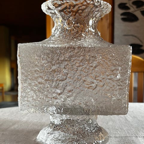 Timo Sarpanevan suunnittelema kirkas lasimaljakko, korkeus 22