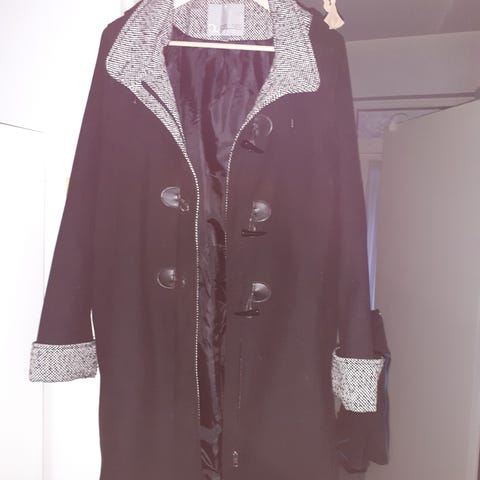 Uudenveroinen, vain kerran käytetty villakangas talvitakki. Kokonaan vuoritettu.