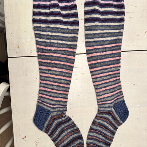 Pitkävartiset villasukat, koko 39-40, Nalle-lankaa, konepesun kestävät, käsinneulotut.