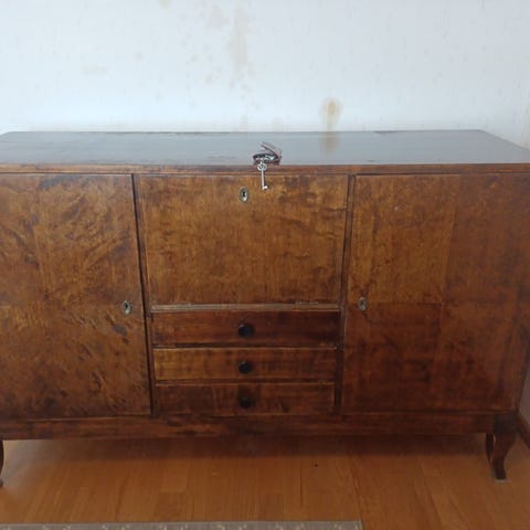 Koivuviiluinen lipasto ovaalikannella
