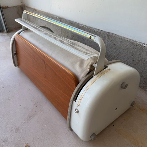 Toimiva vanha suomalainen UPO mankeli jossa ajanpatinaa löytyy. Alhaalla jaloissa pikkasen ruostetta, kun kylpyhuoneessa pidetty. Kankaan alku on rispaantunut, mutta muutoin kangas on siistissä kunnossa. Ostaja kantaa yhdet rappuset alas.