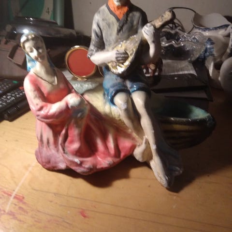 Korkeu n. 24 cm. Hatun kärjessä pieni vika. Muuten täysin ehjä. Lienee venäläistä taidetta.