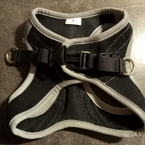Pentuajan käytössä olleet, mutta pieneksi jääneet siistit valjaat, rinnanympärys 38-46 cm. Sovitettavissa Tampereella Hervannassa.