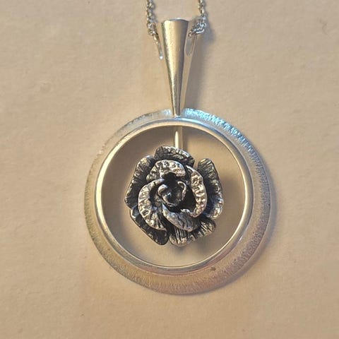 Martti Viikinniemi Ruusu riipus, hopea, 1972