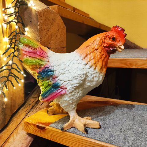 Kukko 🐓 on valmistettu laadukkaasta hartsilasikuitu massasta ja on täysin säänkestävä, joten sitä voi pitää ulkona kesät talvet.
