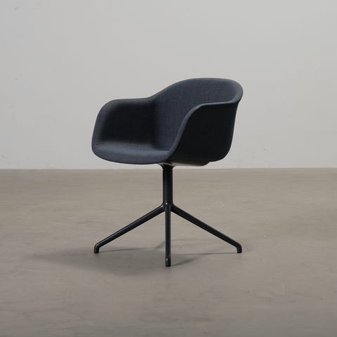 Tanskalaisen Muuton Fiber-sarjan loungetuoli. Suunnittelijat Boris Berlin ja Aleksej Iskos halusivat luoda tuolisarjan, joka koostuu yksinkertaisista ja käytännöllisistä istuinkalusteista. Ideasta syntyi Fiber-sarja, jonka tuolit tunnistaa niiden selkeästä muotokielestä. Tämä loungetuoli on verhoiltu beigellä Steelcut Trio 236 -kankaalla ja siinä on mustat teräsjalat.