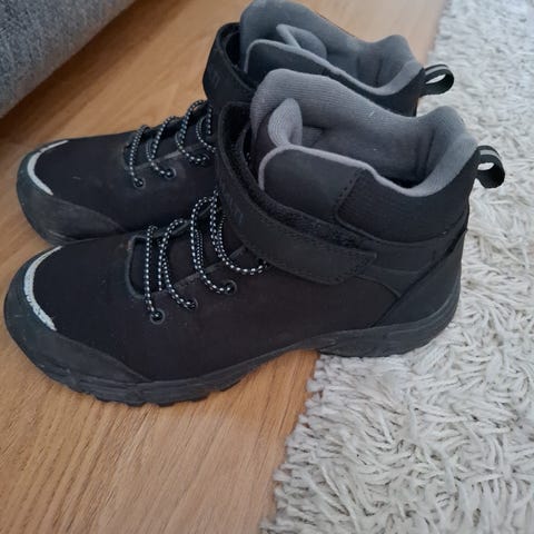 Halti lasten vaelluskengät, koko 36. Väri musta-oranssi. Nauhakiinnitys ja korkea varsi tukevat nilkkaa. Pohja on karkea ja kuminen, suunniteltu pitävään otteeseen vaihtelevassa maastossa. Päällismateriaalissa yhdistyy tekstiili ja synteettinen materiaali. Unisex-malli, sopii sekä tytöille että pojille ulkoiluun ja retkeilyyn.