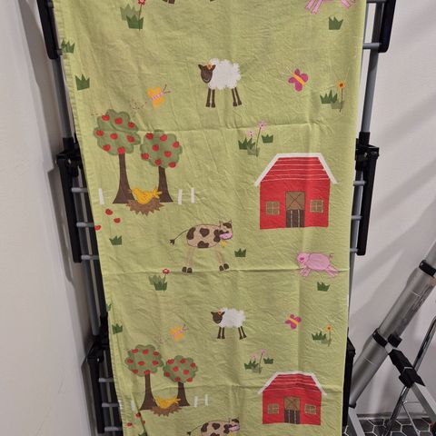 Käytetty lähinnä talosängyn katososan sisäpuolisena kankaana, että lapsi voi rauhoittua sängyssään tutkien pitkältään käsin yläpuolellaan näkyviä kankaan kuvia. Ei ole ollut siis varsinaisessa lakanatarkoituksessa, joten kunto on erinomainen.
