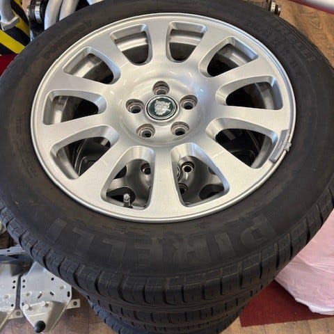 4kpl Jaguar xe alkuperäis vanteet renkailla. Pintaa on noin 6mm. Pulttijako 5x120. Renkaat on suorat