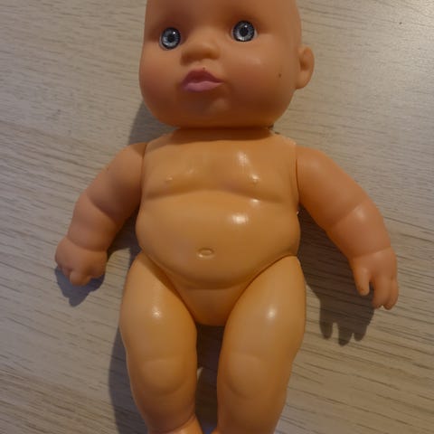 Myydään kuvan pehmeävartaloinen vauvanukke Zapf Creation, niskassa vuosiluku 2009. Silmät eivät sulkeudu eikä ole ripsiä. Nukke on ehjä. Päälaessa vaaleanpunainen tussitöhry joka ei lähde pois. Nuken pituus 30 cm.
