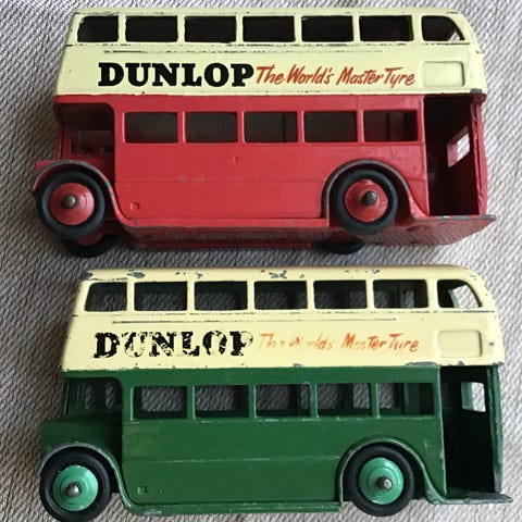 Dinky supertoys bussi. ( 952) Käytössä ollut. Patterikotelo sen verran huonossa kunnossa, ettei saa valoja toimimaan.. Alkuperäinen laatikko mukana