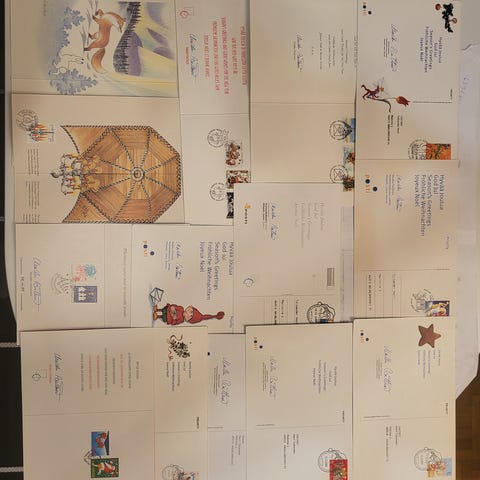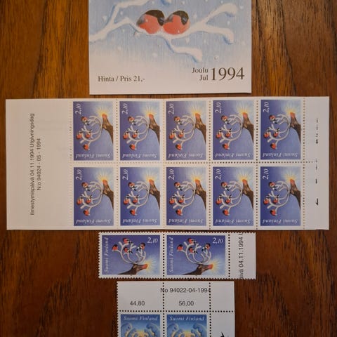 Postin joulutervehdyskortti 1994 joulumerkein ja joululeimalla