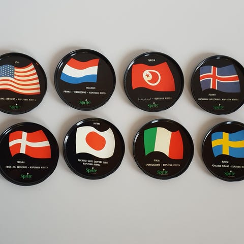 70-luvun Sprite metalliset lasinalustat: Tanska ja Islanti