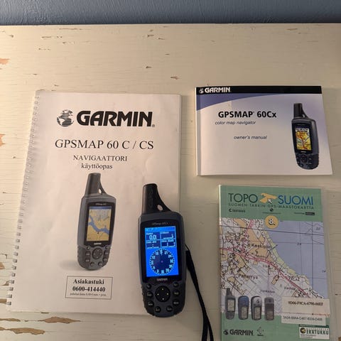 Laite melkein kuin uusi. Antennin vierestä oleva pideke murtunut. Muuten toimii. Suomenkieliset ohjeet ja kartat valmiina. Kaikki kuvassa kuuluu mukaan.