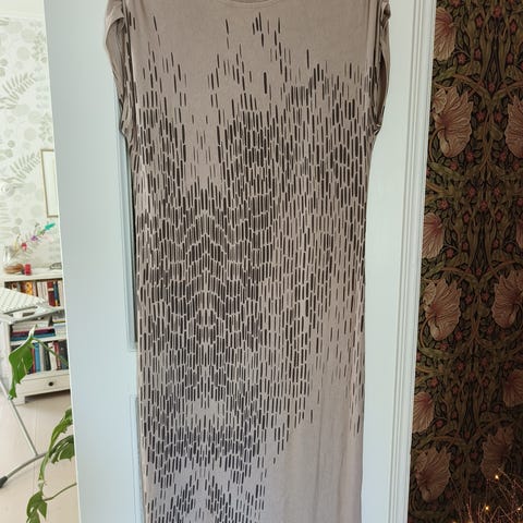 Trikoomekko, koko M/L. Musta-valkoinen. Siististi ommeltu. Vähän käytetty. Mittoja: kainalo-kainalo 54 cm, olka-helma 103 cm, kainalo-hiha 37 cm.