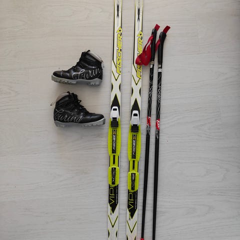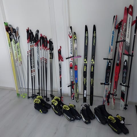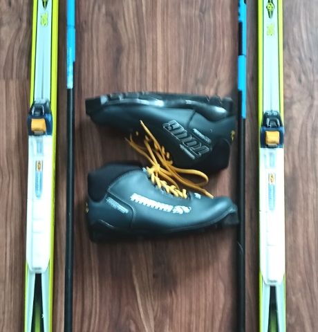 lasten hiihtosetti: kengät + sukset + sauvat + kypärä