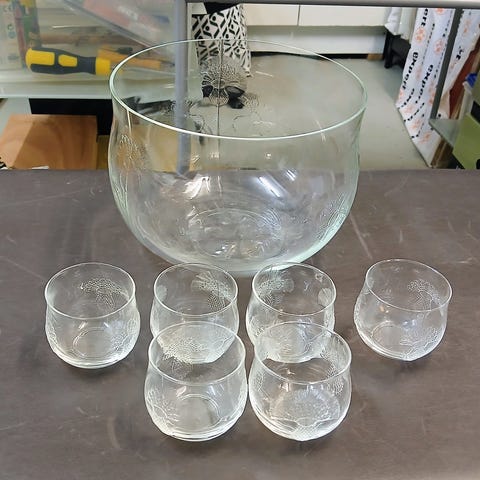 Nuutajärvi, malja Heikki Orvola, singeerattu. Korkeus on 17,5cm ja läpimitta on 16cm. Virheetön.