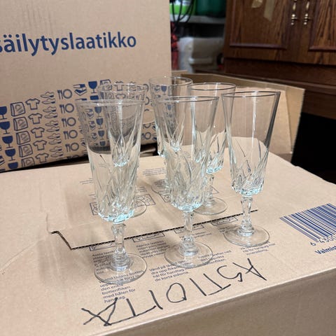 Myyn kaksi kaunista Luminarc France -merkkistä kristallista kuohuviinilasia. Lasit ovat erinomaisessa kunnossa ja tarjoavat upean vaihtoehdon juhlahetkiin. Tyylikkäät ja kestävästä materiaalista valmistetut lasit. Ei halkeamia tai naarmuja.