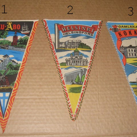 Kuvan mukaiset kangasviirit, hyväkuntoiset, h. yht. 20,-, yksittäin 12,-/kpl