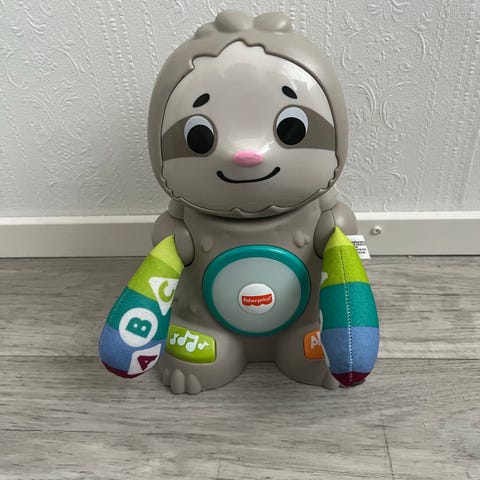Kymmenen palikkaa sisältävä aktiviteettilelu taaperolle. Etanaheiluu ja siitä pitäisi kuulua jotain ääntäkin, mutta meillä ei tässä ole ollut ikinä pattereita paikallaan niin en osaa sanoa millaista ääntä pitää. Useamman lapsen leikkimä, eli naarmuja yms. löytyy, mutta kaikki palat on tallella ja on leikittävässä kunnossa.