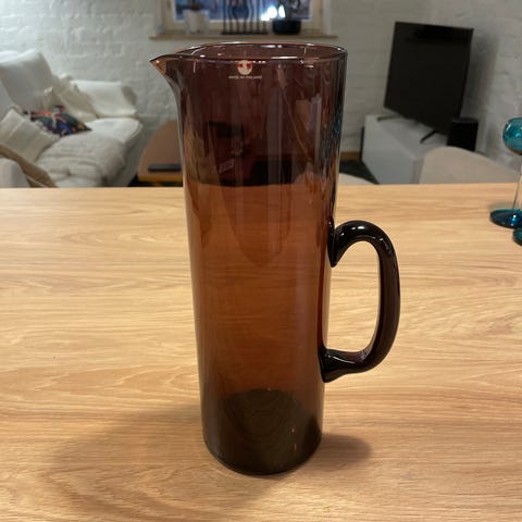 Iittala, Timo Sarpanevan suunnittelema liila kaadin 60-luvulta. Kannun korkeus 25 cm, pohjan halkaisija 8 cm.