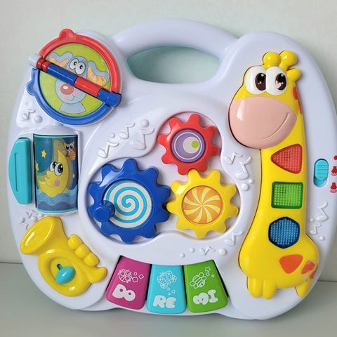 Ääntelevä ankka. Tulee eri ääiniä ja lauluja kun painaa kirjanita.Valot syttyy kirjaimiin