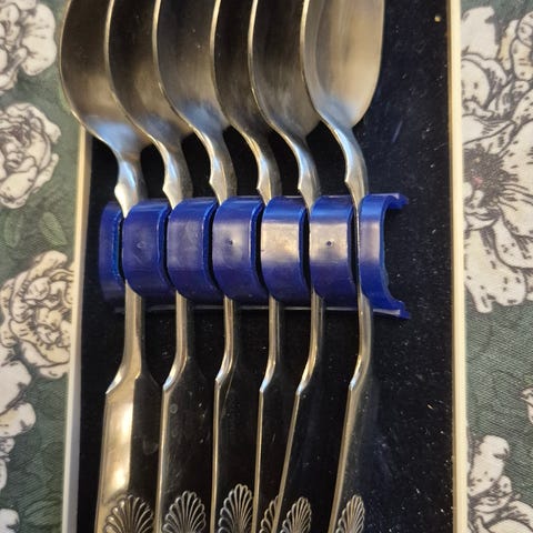Myydään 6 kpl hopeisia kahvilusikoita. Leimojen mukaan Kultakeskus valmistanut Turussa v. 1938. Takana kaiverrus 25.2.1939 ja edessä oleva kaiverrus näkyy kuvissa. Nouto Ylöjärvi.