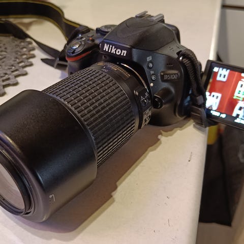 Myydään vähän käytetty ja täysin uutta vastaava Nikon D5100 oheistarvikkeilla. Mallissa on myös kätevä kääntyvä näyttö, jota voi käyttää kuvaamiseen. Mukaan tulee Nikonin AF-S NIKKOR 18-55mm objektiivi, akkulaturi ja kameralaukku.