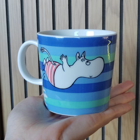 Uimahyppy-muki (0.3L) on sesonkimuki kesältä 2006. Keräilyesine, mutta toki pystyy halutessaan käyttää. Käyttämätön, tarraton. Arabia tuotantoa. Kruunuleima.