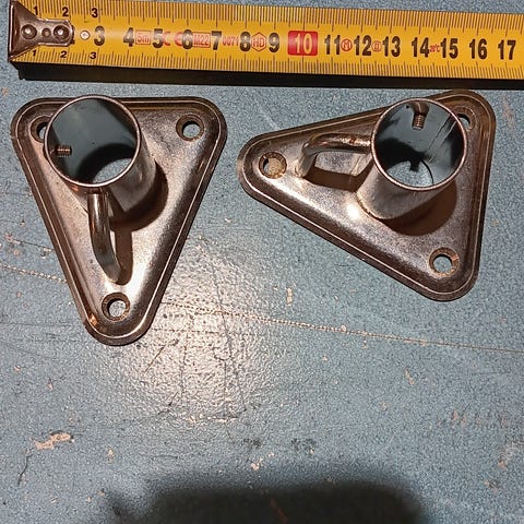 Kaideheloja 25mm putkelle,ei ole päätyheloja 5€ kpl..Knaapi ja kahvat,eloksoitua alumiinia 3€kpl.Luukun salpoja 2€ kpl.tuuletusritilät RST 5€kpli .Toimitus vain koko läjän ostaneelle.