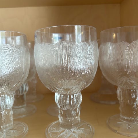 Nuutajärvi pioni 6kpl juomalaseja. Oiva Toikka. 12.5cm korkea n8cm halkaisija ylhäällä. Neljässä nuutajärvi tarrat. Kahdessa arabia tarrat jalassa.