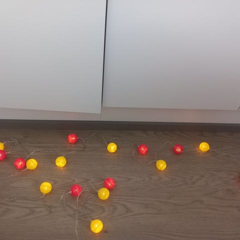 Lähes käyttämätön minipallovalosarja, väreinä valkoinen, harmaa ja turkoosi.