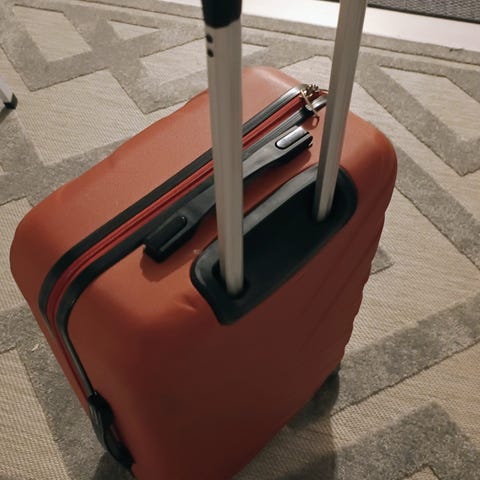 Kuvanmukainen käytetty kangaspäällinen matkalaukku. Tukevat pyörät. Sisäänkelautuva vetokahva. Vetoketjullinen tasku sisä- ja ulkopuolella. Sisällä kiinnikkeet. Siisti sisältä. Mitat 59, 21 ja 40 cm. Nouto 15€