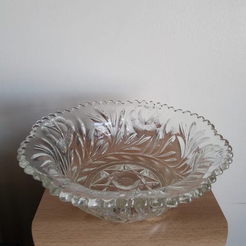 Ikäisekseen hyvässä kunnossa ei lohkeamia. Lasikannu ja laseja 10 kpl.