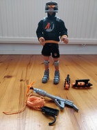 Action Man Figuuri/rullaluistelu. Ikäisekseen hyvässä kunnossa ja toimiva lelu uusiin leikkeihin. Laatikkoa ei ole, laatikon kannesta kuva poimittu googlesta.