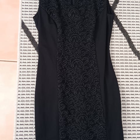 Myyntiin käyttämätön NLY Eve pitkämekko. Hihaton malli korkealla kaula-aukolla ja ohuilla elastisilla olkaimilla. Syvä aukko selässä joka suljetaan hakas-kiinnityksellä niskasta. Kietaisumallinen sivusta ylös. Vyötäröresori. Korkea halkio yhdellä sivulla edessä. Vuorattu hameosa. Valmistettu 95 % Polyesterista ja 5 % Elastaanista.