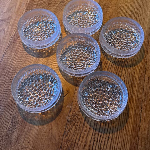 6 x Iittala Ultima Thule jälkiruokakulho / annoskulho / pieni tarjoilukulho. Jalaton. Kulhon halkaisija 14,5 cm, korkeus 5 cm.
