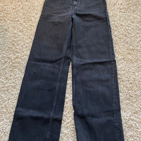 Monkin high relaxed farkut, kokoa 27. Vasemman puolen sivu-osassa pieni vaalea kohta (näkyy kuvissa) muuten hyvässä kunnossa.