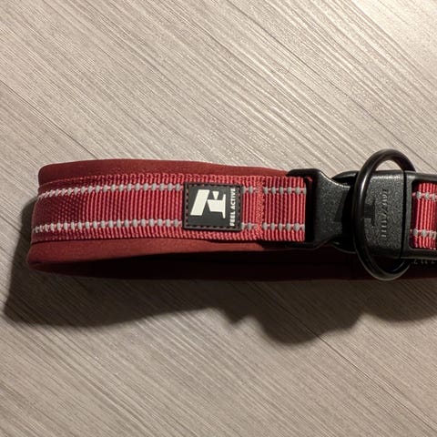 Käytetty, mutta hyväkuntoinen koiran kaulapanta eteenpäin. Mukava pehmuste.
