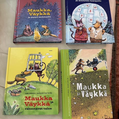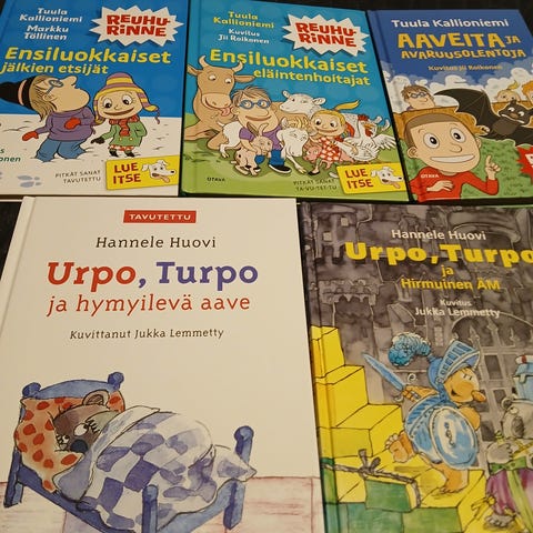 Myydään 7 hyväkuntoista kirjaa. Opri-kissan onnenvuosi, Otusten joukossa, Matildan kissat, Hattumatka, Virtahepo kotona, 2x Treetoppien kaksosten seikkailut : Kaksoset pelastavat stegosauruksen.
