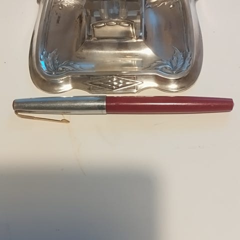Vintage Parker mustekynä Oriolan logolla. Muovinen lahjakotelo. Vaatii uuden musteen.