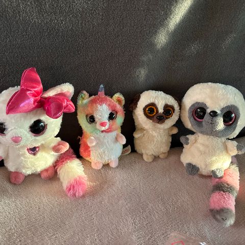 Vaalean kirjava pehmeä hamsteri. Vaaleanpunaiset glitter-silmät. Korvien sisäosat, käpälät ja häntä vaaleanpunaista glitterkangasta. Vaaleanpunaisessa kuono on kimalteleva. Korkeus n. 22 cm.