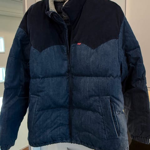 Leviksen puffertakki, uudenveroinen. Kiristykset helmassa. Koko M. Musta.