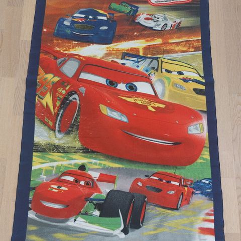 Ihan täysikokoinen kylpypyyhe Autot Cars kuvalla. Pyyhkeessä Salama Mac Queen. Pyyhettä on käytetty ihan reilusti, se ei ole enää uuden pehmeä ja aavistuksen ehkä väritkin haalistuneet. Silti ihana pyyhe vielä.