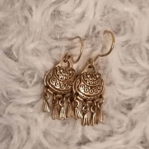 Kaksi paria korviksia. Lieneekö pronssia? Kelttiläinen tai viikinki? Hienot ja näyttävät.